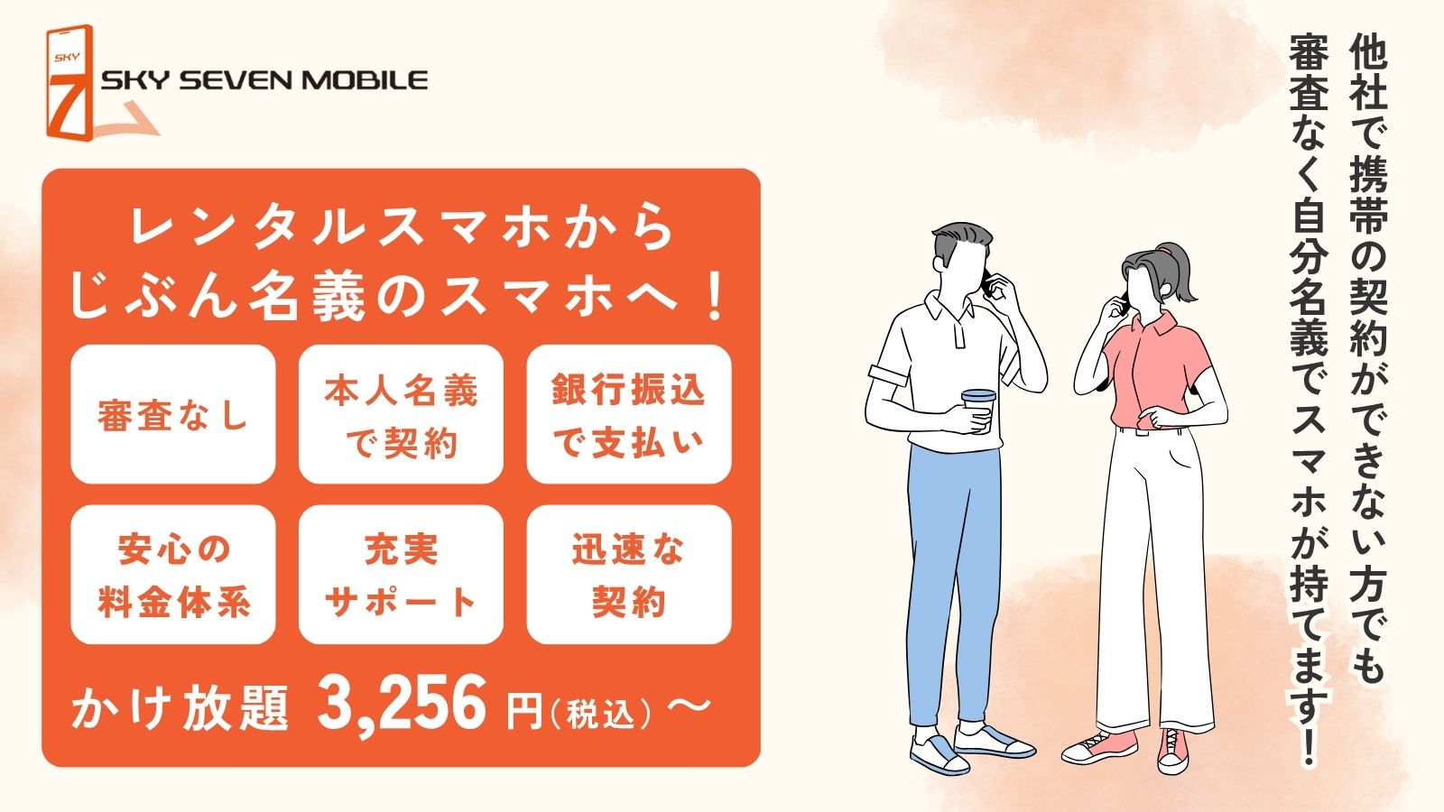 スカイセブンモバイルは、他社で契約を断られた方でもご自身の名義で契約が可能です。